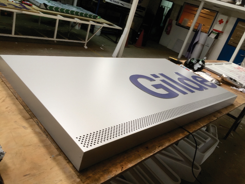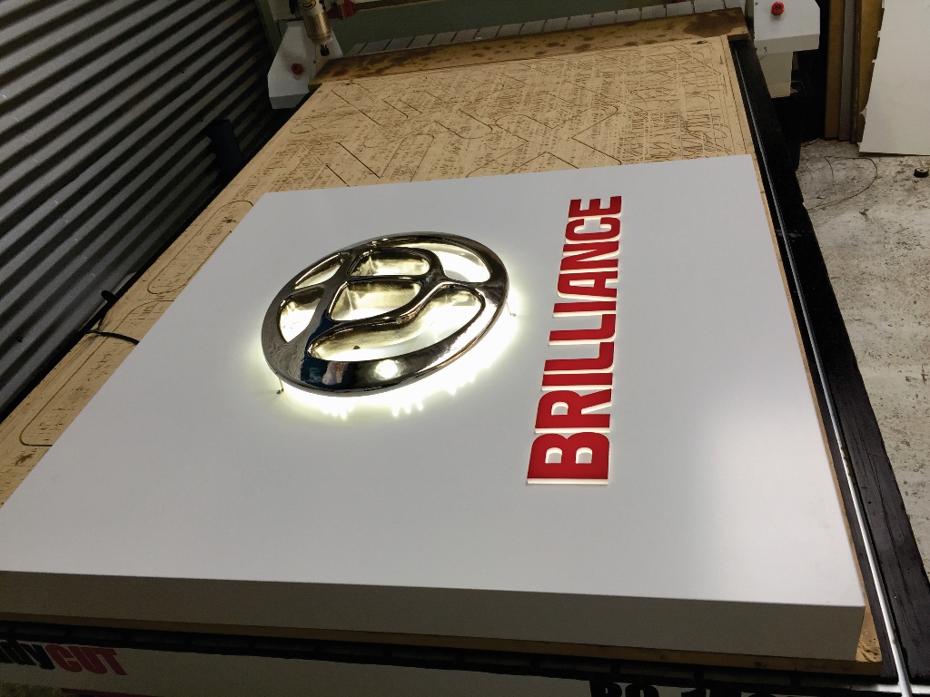 Letrero Retro iluminado con bastidor, tela back lite, marco perimetral con plegado especial, con diferentes iluminaciones, tales como Calugas LED de 7000°k, Tubos LED de 6500°k, y cinta LED, también ofrecemos cajas de luz en aluminio compuesto con texto y/o logos ruteados en acrílicos.
